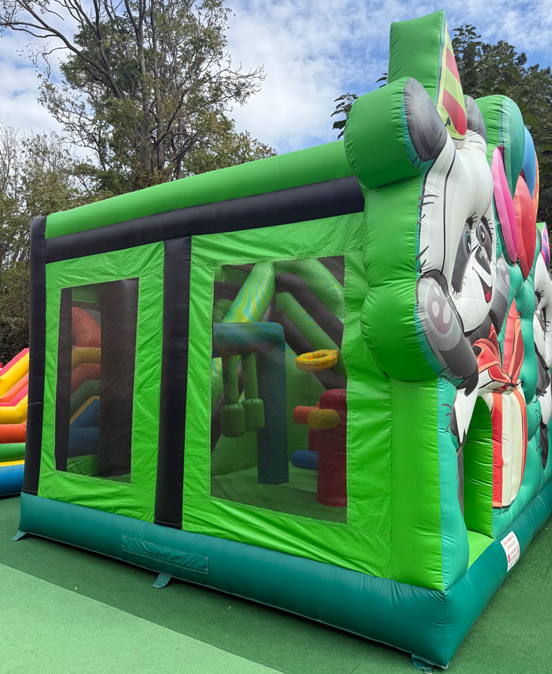 Dvorci su profesionalni, i napravljeni su od najkvalitetnijih materijala. U prikazanu cenu ispod dvoraca je uračunat dvorac, prevoz, montaža, i demontaža za Beograd, i okolinu (do 40km) za 8 sati igranja. Za druge lokacije po dogovoru. Posedujemo i agregat u slučaju da nemate pristup struji.